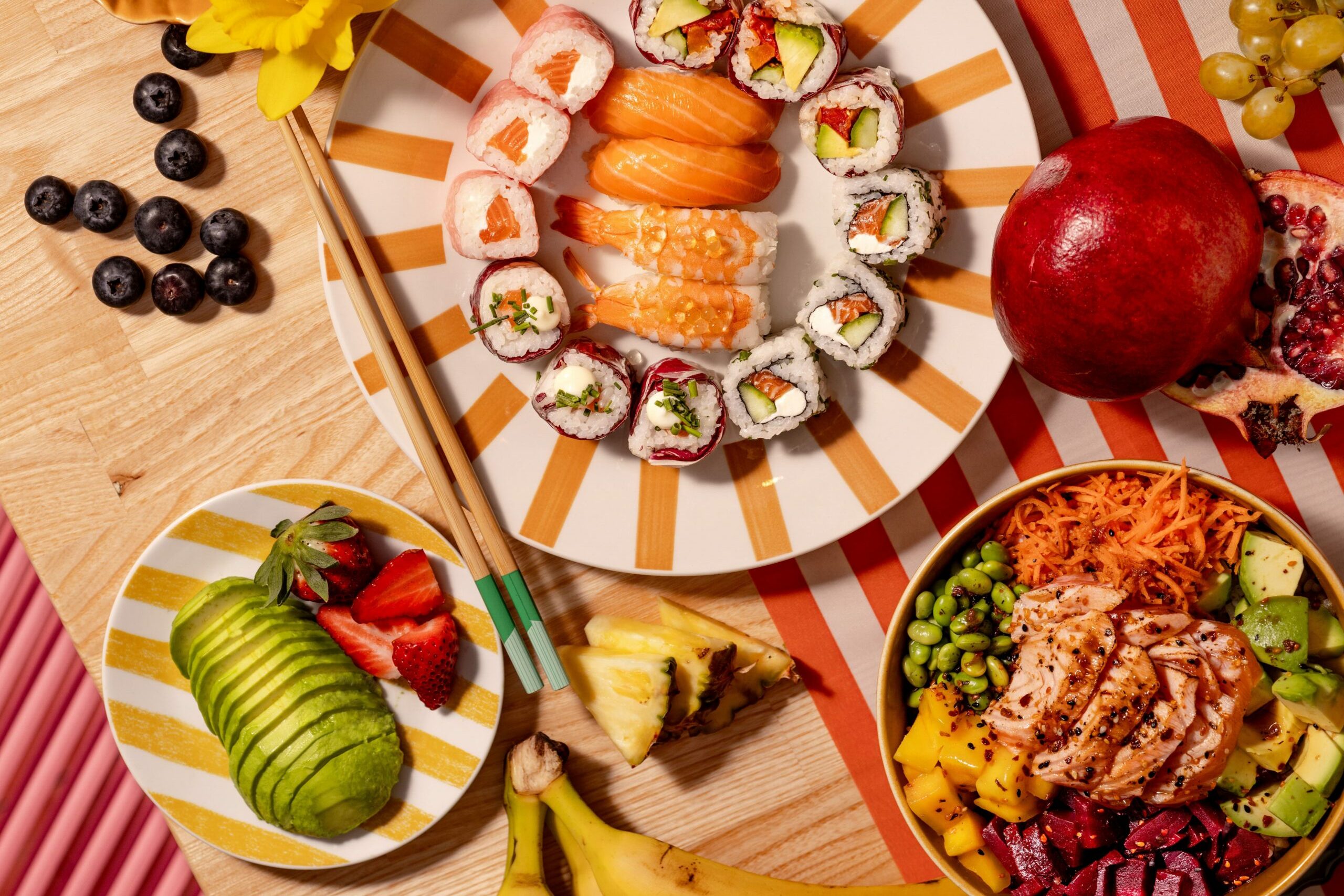 (Sushi, maki, california, sashimi, chirashi, bowl… Nos plats sont élaborés pour convenir à toutes les envies, avec une attention constante portée à la qualité, à la fraîcheur et au goût.
